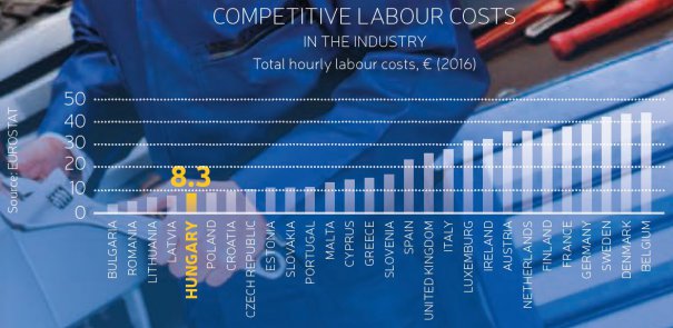 Are mai puţin de jumătate din suprafaţa României – 93.023 kmp faţă de 238.397 kmp – şi un raport similar al populaţiei – 9,79 mil. faţă de 19,63 mil. -, însă beneficiază de un PIB nominal per capita de trei ori mai mare decât al nostru (31.370 USD faţă de 11.817 USD). Nu are o tradiţie în industria auto, singurele legături cu acest sector fiind bătrânele camioane Raba şi autobuzele Ikarus. Cu toate acestea Ungaria, căci despre statul vecin este vorba mai sus, a reuşit în ultimii 28 de ani să dea o lecţie usturătoare României în privinţa atragerii investiţiilor străine din industria auto.