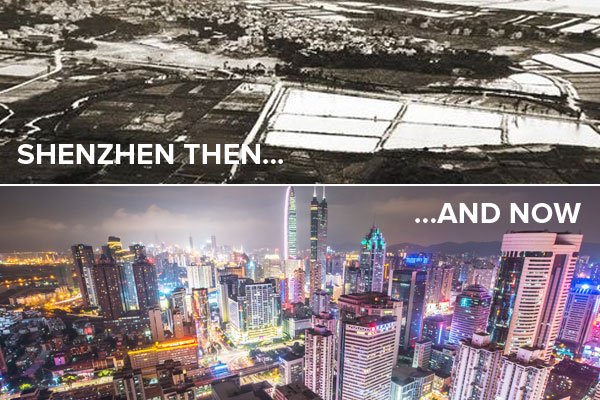 China este una dintre acele ţări în curs de dezvoltare care au trecut cel mai recent prin procesul de industrializare, schimbându-se dintr-o societate axată pe producţia agricolă într-una bazată pe producţie industrială. În 1978, după moartea lui Mao Zedong,  Deng Xiaoping a renunţat la dogmele vechi şi a declanşat o amplă reformă economică, orientată spre o liberalizare controlată şi treptată, atât internă, cat şi externă. Acesta a ales cinci zone care urmau să devină ţinta investiţiilor. Shenzhen a fost una dintre cele cinci regiuni alese. Shenzen este situat pe malul râului Pearl River la Nord de Hong Kong. În urmă cu 30 de ani aici trăiau câteva familii de pescari, iar satul era numit Baoan County. Numele Shenzhen l-a primit în anul 1979.