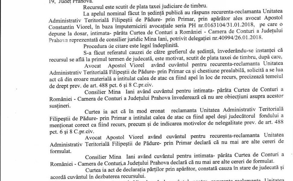 In stilul sau caracteristic a contestat pana in panzele albe actul Curtii de Conturi pentru a trage de timp, asa cum a procedat cu absolut toate procesele sale, inclusiv cu Ordinul de încetare a mandatului primarului din Filipeștii de Pădure emis de Prefectura Prahova, ordin emis dupa multe ezitari.