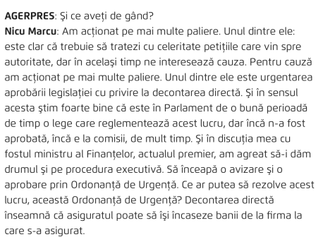 Dar iată ce zice Nicu Marcu în interviul Agerpres, ascunzând cauza reală, respectiv că el personal nu spraveghează în mod real piața asigurărilor.