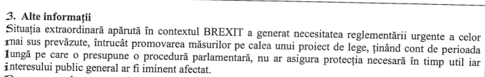 ii) Motivarea în scris a ordonanței de urgență, și a ,,urgenței” îl ia efectiv de prost pe ministrul de finanțe care și-a asumat, Alexandru Nazare, dar și pe premier. Nicu Marcu vrea să ia până la un miliard de lei de la populație pe motiv de (?!?) Brexit: