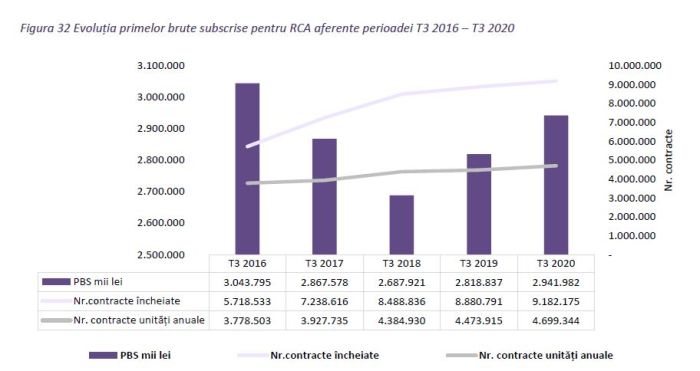 Graficul arată și că sunt 9,18 milioane de contracte încheiate (pentru circa 6 milioane de autovehicule), întrucât asigurarea poate fi anuală, semi-anuală, lunară, deci un proprietar poate încheia mai mult de un contract.