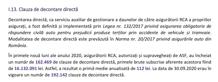 Dealtfel, chiar ASF constată că acesta nu este un serviciu cerut de către piață, în propriul raport, fiind accesată clauza doar în cazul a 1,7% din totalul celor peste 9 milioane de polițe RCA încheiate. 98,3% din cei care încheie contracte RCA obligatorii, nu consideră utilă clauza.