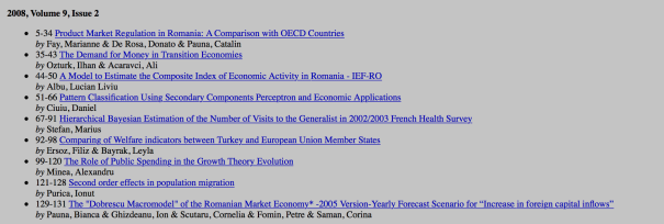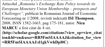 - Revisa cotată ISI Thompson – ,,Romanian Journal of Economic Forecasting”’ nu include în sumarul numărului 2/2008 un astfel de articol, pretins publicat în această ediție. Prin urmare, articolul folosit de Nicu Marcu pentru a dovedi cercetare științifică post-doctorală (și a își lua gradele sau funcții la Universitatea din Craiova), nu există.