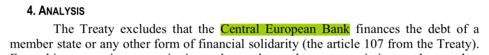 3. Nesurprinzător, cercetătorul post-doctoral Nicu Marcu plătit cu 4.000 de lei pe lună pentru asta (92.000 de lei în total), citează la mișto și chiar împotriva articolul 107 al tratatului. Pentru că articolul 107 vorbește despre independența Bancii Centrale Europene (ECB Nicule). Adică ECB și băncile centrale naționale nu vor căuta și nu vor accepta să primească instrucțiuni de la guverne (etc) și vor fi independente. Cu alte cuvinte, Nicu reinventează articolul 107 al Tratatului, forma originală fiind în mod evident neînțeleasă de Nicu.