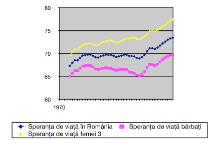 În urma cu ceva timp am făcut un studiu, analizând cum a crescut speranța de viață în România. Grafic, concluziile arată așa pe intervalul analizat (1970-2010)