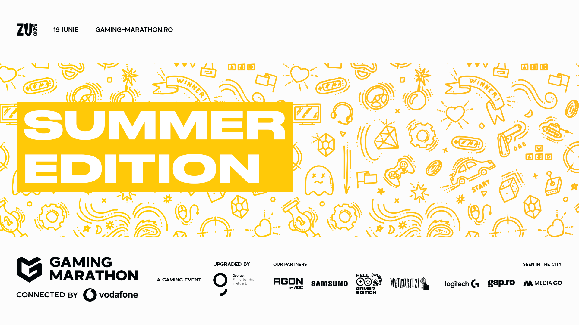 Gaming Marathon este connected by Vodafone și upgraded by George și susținut de AGON by AOC, Samsung, HELL ENERGY, Meteoritzi, Logitech G, Radio Zu, Gazeta Sporturilor și Media GO.
