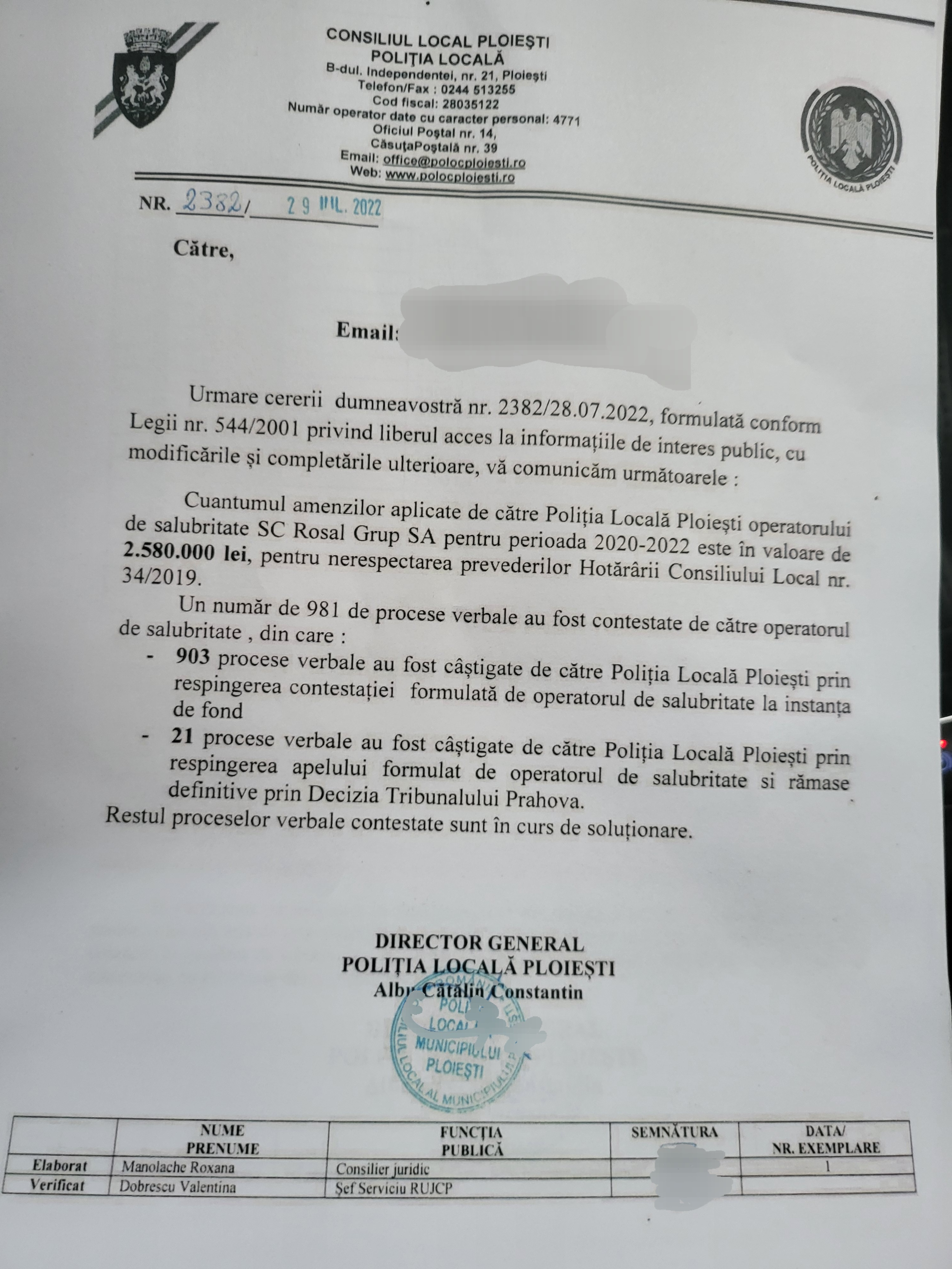 Deci, directorul general al Politiei Locale Ploiesti care a efectuat un fals ordinar pentru denigrarea firmei Rosal (impreuna cu Manolache Roxana si sefa juridicului- Dobrescu Valentia de la Politia Locala Ploiesti) „viziteaza” firma „rivala”?
