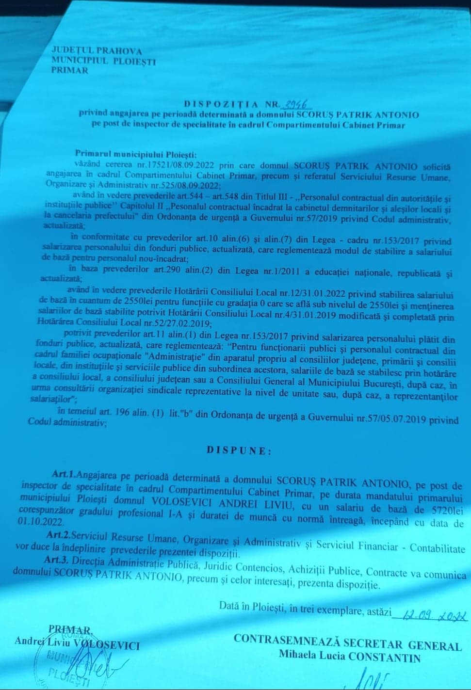 Reamintim ca, mintea odihnita a edilului Andrei Volosevici a propus o noua procedura si criterii in vederea organizarii concursului pentru ocuparea posturilor de conducatori ai institutiilor si serviciilor publice de interes local din municipiul Ploiesti, fiind vizate doua posturi de conducere la Parcul Memorial „Constantin Stere” (post pentru PSD) si la Clubul Sportiv Municipal Ploiesti, post probabil pentru proaspatul consilier agronom al primarului, Patrik Scoruş, fiul lui Fernando Scoruş. (Probabil acesta din urma inca confunda fostul garaj al SRI Prahova, unde isi facea veacul, cu vocabularul de cocalar si amenintarile in stanga si in dreapta).