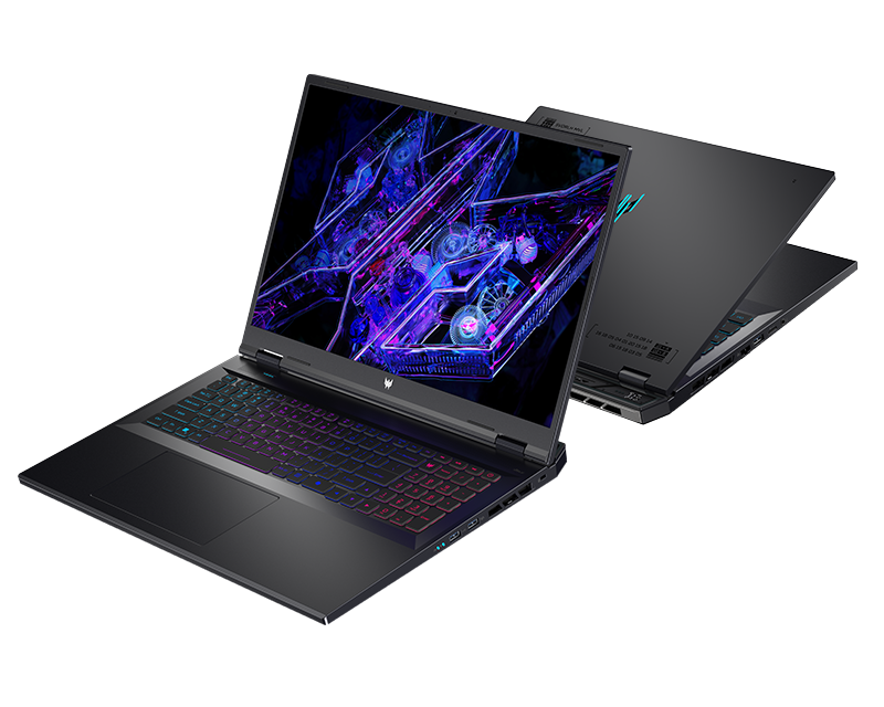 Laptopurile de gaming Acer, axate pe performanță, sunt dotate cu cele mai noi procesoare și caracteristici superbe, permițând jucătorilor să își atingă potențialul maxim în timpul jocului. Cu până la un procesor Intel Core i9 14900HX, care dispune de o arhitectură hibridă de performanță recent optimizată, Predator Helios 18 (PH18-72) și Predator Helios 16 (PH16-72) permit utilizatorilor să se confrunte cu cele mai solicitante jocuri și software-uri de astăzi, fără compromisuri. Tărâmurile jocurilor video apar mai realiste ca niciodată pe laptopurile de gaming pregătite pentru inteligență artificială, alimentate de grafică până la NVIDIA GeForce RTX 4090[1] (MGP de până la 175 W[2] ) proiectat cu arhitectura ultra-eficientă NVIDIA ADA Lovelace pentru a oferi performanțe revoluționare și grafică îmbunătățită de inteligența artificială datorită capabilităților complete de ray tracing ale tehnologiei DLSS 3.5. Tehnologiile GeForce RTX sunt acceptate în peste 500 de jocuri și aplicații populare, inclusiv în jocuri de succes precum Cyberpunk 2077 și Alan Wake 2. Soluțiile termice avansate de la Acer mențin dispozitivele și componentele interne la turație maximă, acționate de ventilatoarele duble AeroBlade de generația a 5-a.