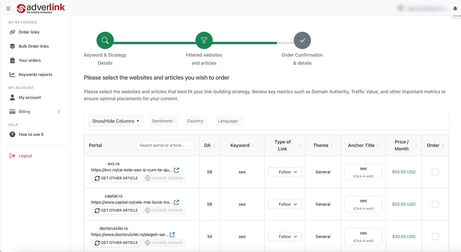 ✅ Posibilitatea de a alege tipul de linkuri potrivite pentru strategia ta