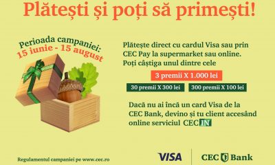 Începutul verii vine cu vești bune pentru posesorii de carduri Visa de la CEC Bank. Banca dă startul unei campanii promoționale, cu premii deloc de neglijat,...